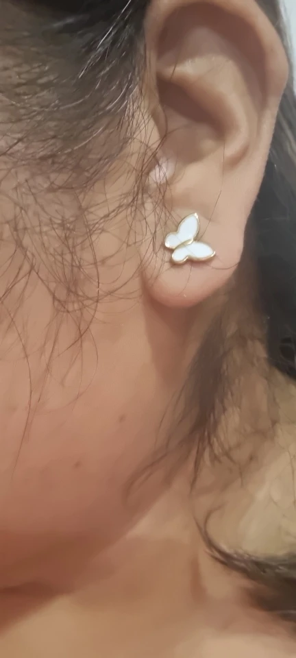 - Boucles d'oreilles Papillon Blanc : Fabriquées avec une finition blanche polie pour un look doux et lumineux qui ajoute une touche de pureté et de sophistication.